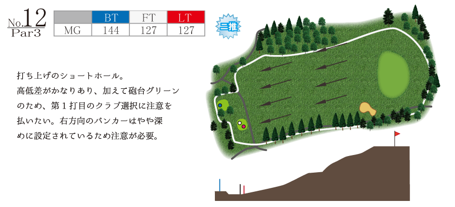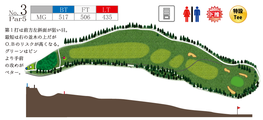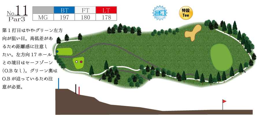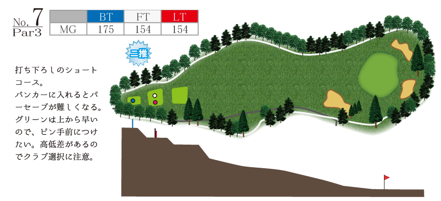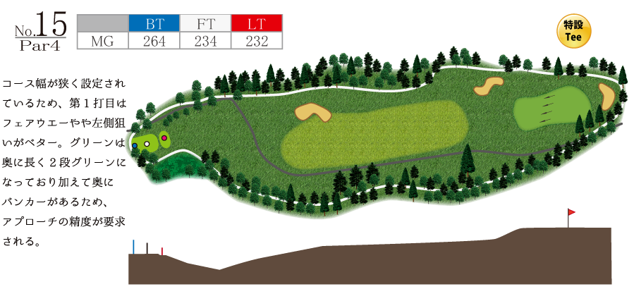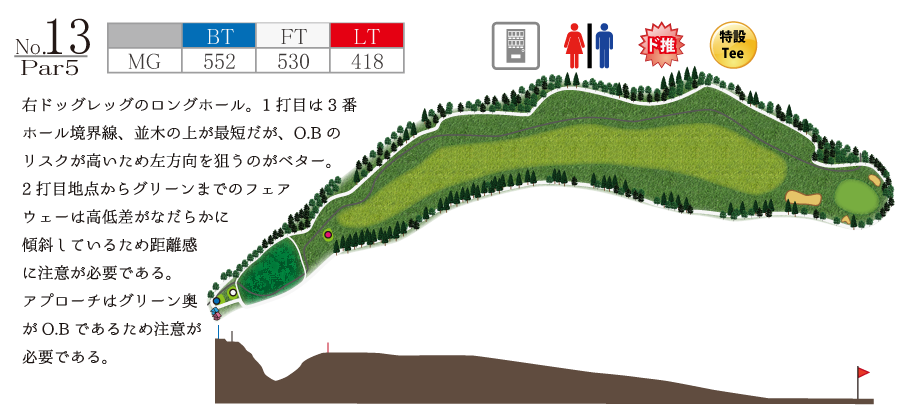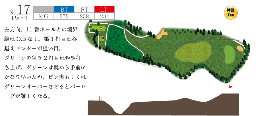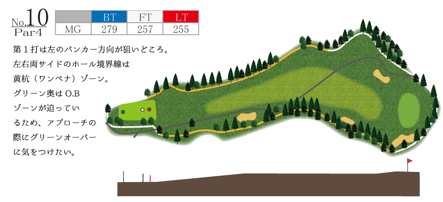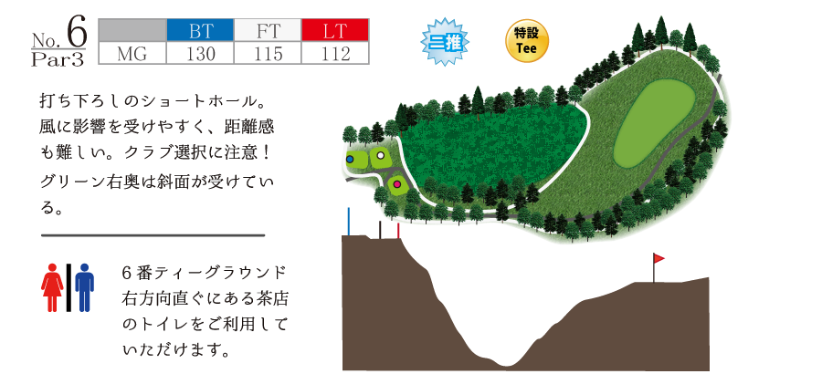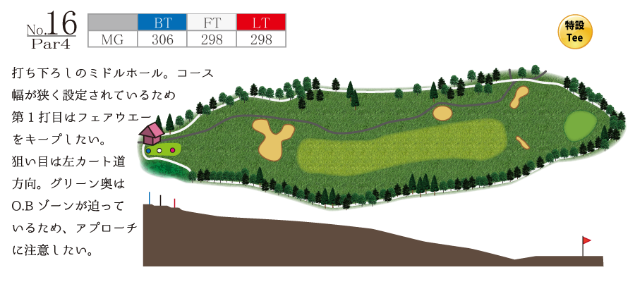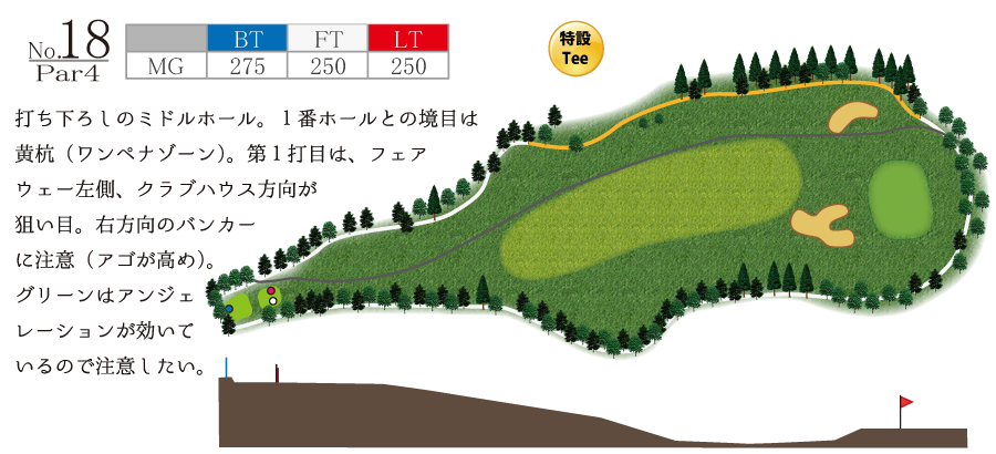 コースの総ヤードは、シニア、女性、初心者に優しく、気持ちよくラウンドできます。