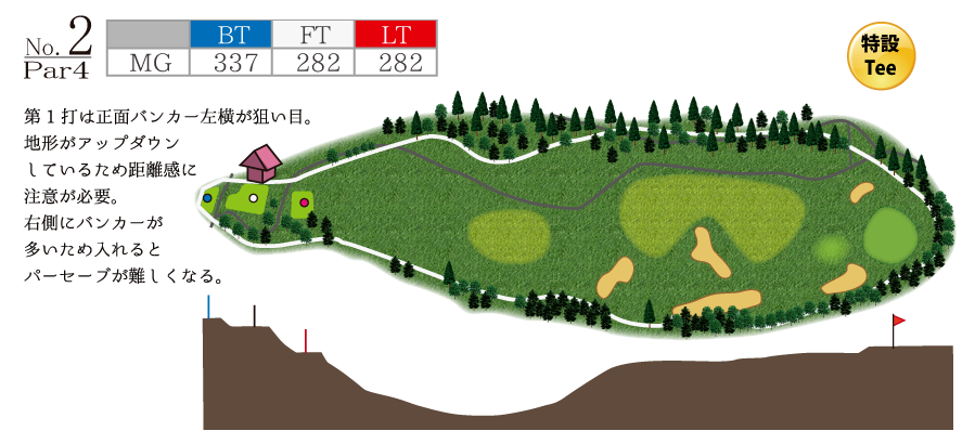 コースの総ヤードは、シニア、女性、初心者に優しく、気持ちよくラウンドできます。